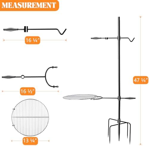 - Quick and Simple Setup: CANDANA campfire firepit grilling set features a convenient hook for hanging a kettle while cooking over a campfire. Heavy-duty stainless steel grate provides excellent cooking performance.