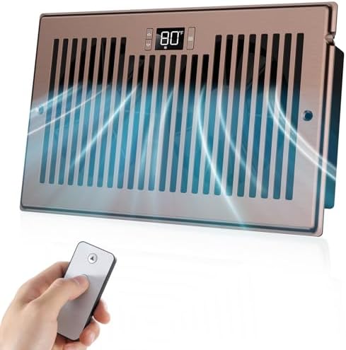 Quiet Register Booster Fan Fits 6" x 10" Register Holes, 10-Speed Smart Heating Cooling AC Vent Fan with Remote Control and Thermostat Control - Bronze