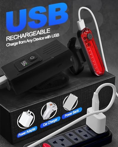 - [ Power Display ] Equipped with a LED digital screen, our bicycle light can show you how much power remaining exactly and clearly. Will not get confused by the last power any more. Our new version bike light with power dispaly is worth a try!