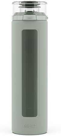 Ello Syndicate 20oz Reusable Glass Water Bottle with One-Touch Leak Proof Flip Lid and Protective Non-Slip Silicone Sleeve and Carry Loop for Coffee, Tea and Water, BPA-free Dishwasher Safe