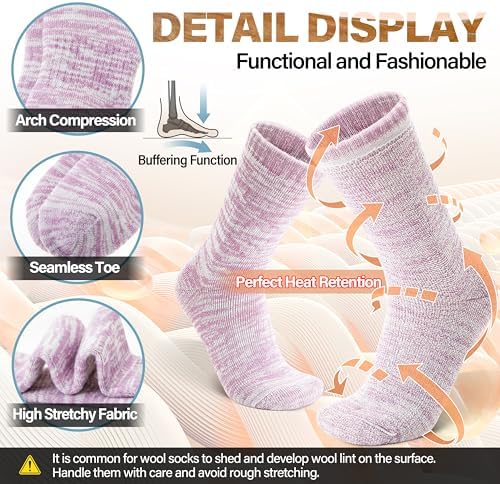 Anlisim Merino Wool Warm Boot Hiking Socks Thermal Extra Thick Winter Cozy Crew Comfy Cushioning Work Women Men Socks 4 Pairs