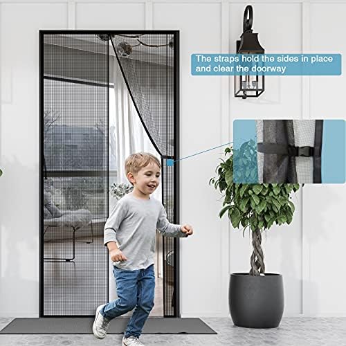 Magnetic Fly Screen Door,Fiberglass Enhanced Screen Mesh,with Stay Open Buckles,Heavy Duty Self-Sealing Mesh,(Fit for Door Size:36x82 Inch,Screen Itself Size:38x83 Inch,Black)