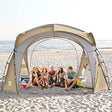 Beach Tent 12 X 12ft Large UPF50+ Pop Up Canopy with 2-Pcs Side Wall, Sun Shelter Rainproof, Waterproof for Camping Trips, Backyard Fun, Fishing, Parties, Or Picnics(Khaki-Upgrade)
