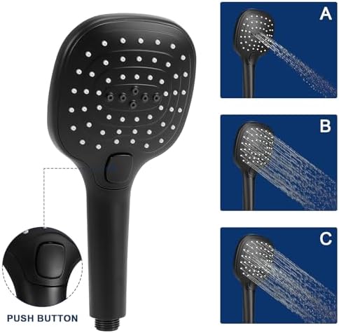 - HANDHELD SHOWER WITH PUSH BUTTON FLOW CONTROL: Large 4.7 Inches hand hold shower head for wide water flow coverage. With a convenience push of a button,switch flow settings,enjoy 3 shower settings of Raining Mode, Massage Mode, Mixed Mode.