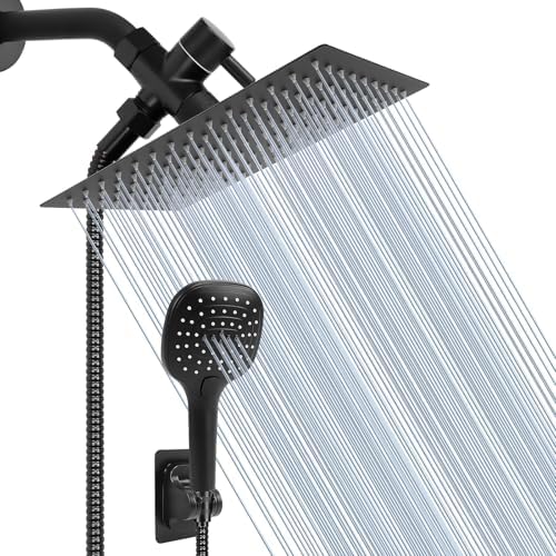 NearMoon Shower Head with Hose, High Pressure Stainless Steel Rain Shower and 3 Settings Handheld Spray Combo with Push Button Flow Control (12 Inch Showerhead Set, Matte Black)