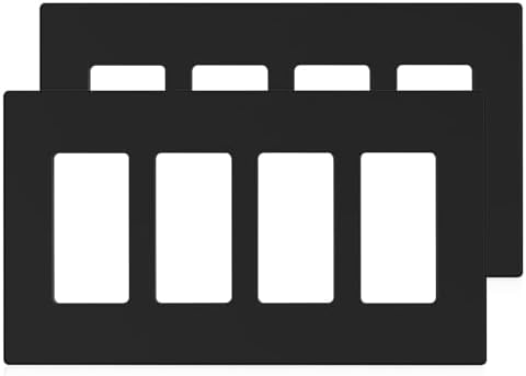 ELEGRP 4-Gang Screwless Decorative Wall Plates, Mid-Size Unbreakable Thermoplastic Faceplate Cover for Decorator Receptacle Outlet Switch, UL Listed (2 Pack, Matte Black)