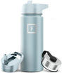 IRON °FLASK Camping & Hiking Hydration Flask with 3 Lids - Stainless Steel, Double Walled & Vacuum Insulated Water Bottle - Leak Proof & BPA Free (Morning Mist, Straw - 18 oz)