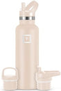 IRON °FLASK Camping & Hiking Hydration Canteens - 3 Lids (Narrow Straw Lid) Leak Proof Vacuum Insulated Stainless Steel - Hot & Cold Double Walled Sports Water Bottle - Sand, 20 Oz