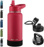 32oz Insulated Water Bottle with Straw, Stainless Steel Metal Vacuum Water Flask, Large Thermos Water bottle with Leakproof 3 Lids for Travel, Camping, Gym Sports Red
