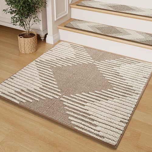 PADOOR Stair Treads Landing Mat Non Slip for Wooden Steps Indoor, 3D Peel and Stick Stair-Carpet Treads Washable Reusable Adhesive Stair Rugs for Kids and Dogs 31"x31" Brown