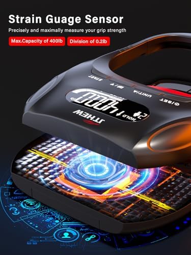 - [Precision Measurement & Scientific Training]The grip strength tester is equipped with a high-precision strain gauge sensor to accurately measure your grip strength up to 400lb. The grip trainer, based on your test results and needs, provides adjustable resistance training, ranging freely from 11 to 132 pounds, ensuring your training is both scientific and effective