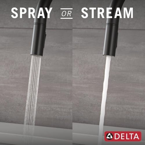 Delta Nicoli Matte Black Kitchen Faucet with Pull Down Sprayer, Modern Single Hole Kitchen Sink Faucet, Single Handle, Matte Black 19867LF-BL