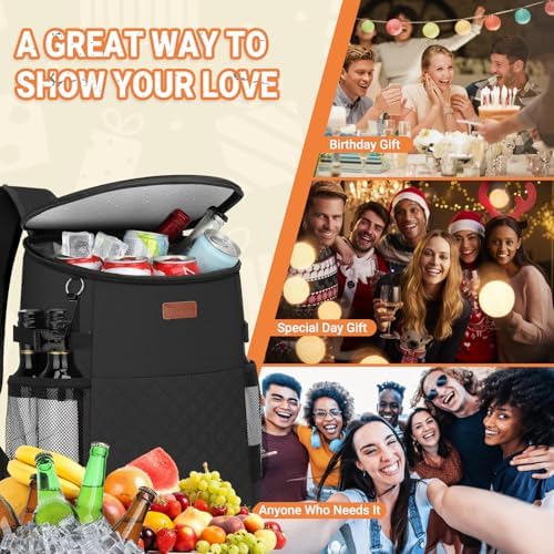 - EXCEPTIONAL INSULATION: Up to 20 hours insulation with this backpack cooler's 5 layer material--including thickened foam insulation and advanced food-grade PEVA seal. Designed to keep your beverages cool and food fresh throughout days of various outdoor activities like tournaments or concert, camping, fishing/boating/beach weekend, family trip, theme part trips.