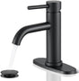 - 【Unique Design】Single handle bathroom faucet with single-handle switch design to meet the needs of all bathrooms. The surface layer has passed the Class 10 24-hour acid salt spray test, which can effectively prevent surface peeling caused by rust, so that your bathroom will last as long as new. Matte black bathroom faucet comes with a panel and can be used for 1 or 3 hole center sink installations