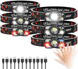 Headlamp Rechargeable 6Pack, 3000 Lumen Ultra-Light Bright Rechargeable Headlamp Flashlight with White Red Light, LED Headlight Motion Sensor, 5+5 Mode for Outdoor Camping Fishing Running Hiking