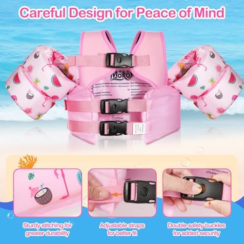 MoKo Toddler Swim Vest for Kids, 20-66 lbs, Arm Floaties with Adjustable Straps, Nylon Material, Swim Vest for Toddlers Learning to Swim