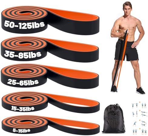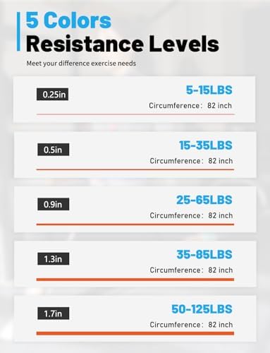 - For All Strength Level: With 5 different strength levels 5-15 lbs, 15-35 lbs, 25-65 lbs,35-85 lbs, 50-125 lbs, these exercise bands will help you upgrade your fitness training from a newbie to a veteran. These fitness bands can be used alone or combined multiple workout bands to increase the challenge. Start now and build your dream body