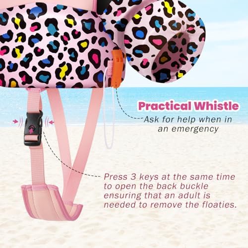 - High Quality: The toddler floaties are made of thickened polyester fabric and double seams technique, making child comfortable and won't rip off when they swimming. Anti-fading technique stay swim vest bright! So it has high durability.