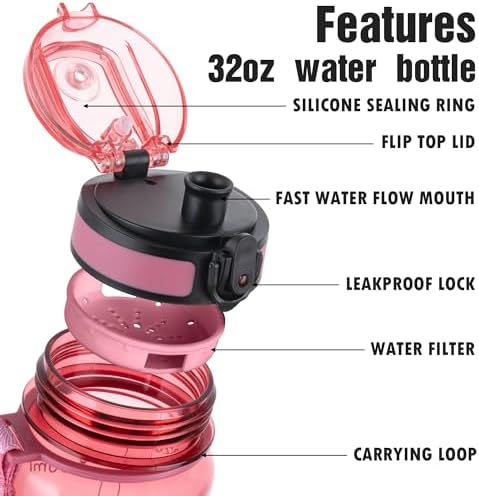 OLDLEY Water Bottle, 32oz Motivational Sports Water Bottle with Time Marker - Times to Drink - Tritan, BPA Free, Wide Mouth Leakproof,Clear Red estรก agotado y se enviarรก tan pronto como vuelva a estar disponible.