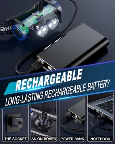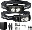 Headlamp Rechargeable 2PCS, Light Bright LED Rechargeable Headlight with White Light, Waterproof Head Lamp with Headband for Outdoor Camping, Hiking, Camping Essentials, Working(Black)