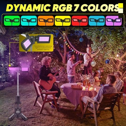 - 【DYNAMIC RGB LIGHTING & SOS MODE】This camping lantern features 7 RGB COLORS, WHITE, and GOLDEN LIGHT with 5 BRIGHTNESS LEVELS. Choose GRADIENT MODE or fix a single color for customized lighting. The THREE-LEAF DESIGN enables single, double, or full illumination. Its FLASH WARNING MODE doubles as an SOS SIGNAL with 4 SPEEDS, adding safety for outdoor adventures. Ideal for setting moods, lighting parties, or handling emergencies effortlessly.