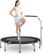 Sweetcrispy 40" in/48 in Mini Fitness Trampoline - 330LBS Foldable Exercise Rebounder with Adjustable Handle, Stable and Quiet, for Adults Indoor/Outdoor Workout