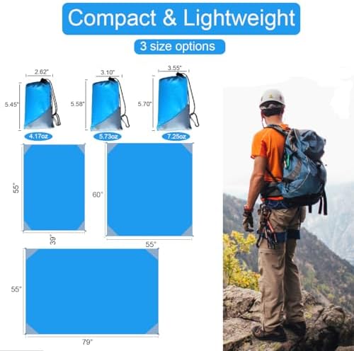 - Compact & Lightweight – This compact blanket can be folded to fit a small bag, it’s so handy even can be put in your pocket, it's also a ultralight tarp. Hook it onto your backpack, throw it in your bag or keep it in your car. It’s 7oz but a larger size. Carry it when you’re outdoors, it can be your small travel picnic blanket for festival, concert or backpacking etc, It’ll never be a burden.