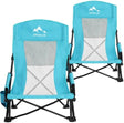 Oileus Folding Portable Beach Chair, High-Back Low-Seat Lightweight Chair for Beach Tents, Shelters, and Camping, Full Mesh Backrest | Cup Holder | Storage Bag | Carrying Bag | 2 Armrests