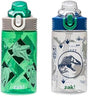 Zak Designs Jurassic World Dominion Movie Sage Kids Water Bottle For School or Travel, 16oz Durable Plastic Water Bottle With Straw, Handle, and Leak-Proof, Pop-Up Spout Cover, 2-Pack Set