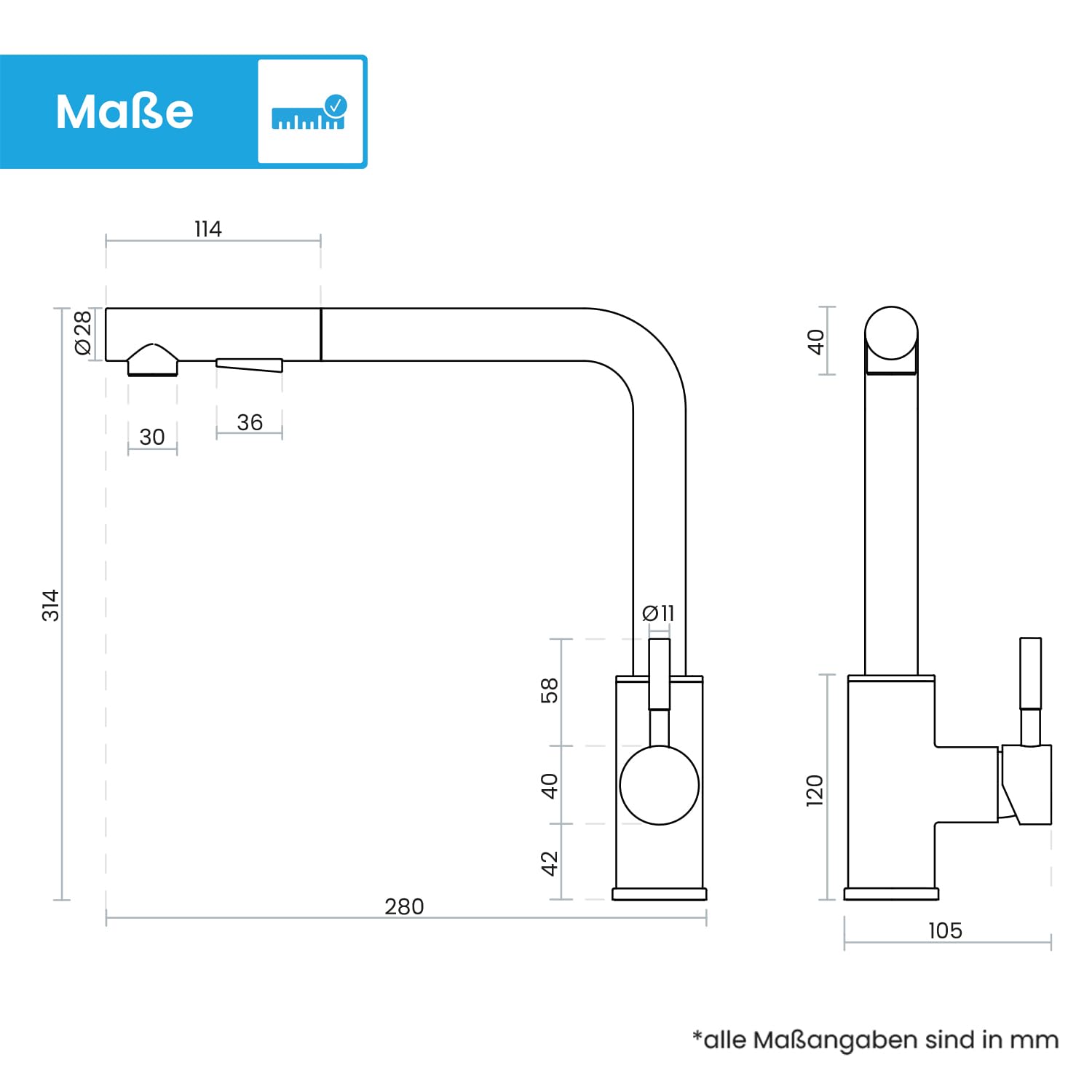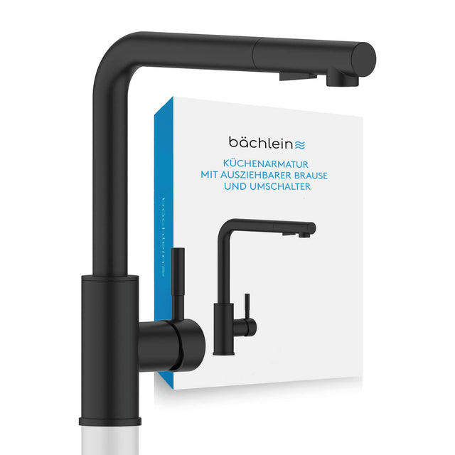 Bächlein 360 Degree Rotating Kitchen Mixer (Matte Black) - Stainless Steel Single Lever Sink Mixer with Extendable Hose and Switch Shower, Water Faucet