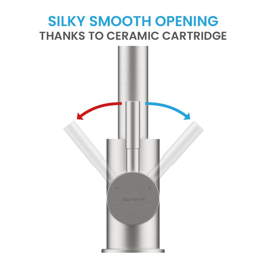 Bächlein Kitchen Faucet 360 Degree Swivel (Brushed Stainless Steel) - One-Hand Stainless Steel Sink Mixer with Flexible Neck and Shower with Switch Button, Water Tap for The Kitchen