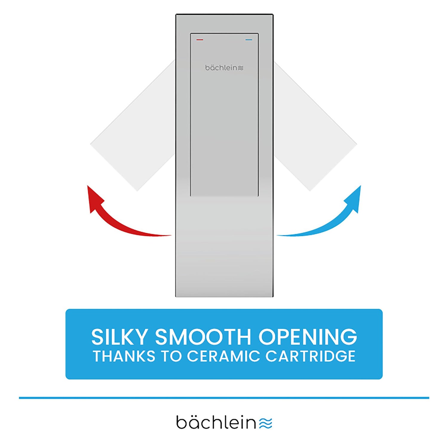 - Modern design: the bathroom tap stands out thanks to its exceptional design, reminiscent of a waterfall. The wide water jet ensures a pleasant feeling of softness on the skin when washing hands