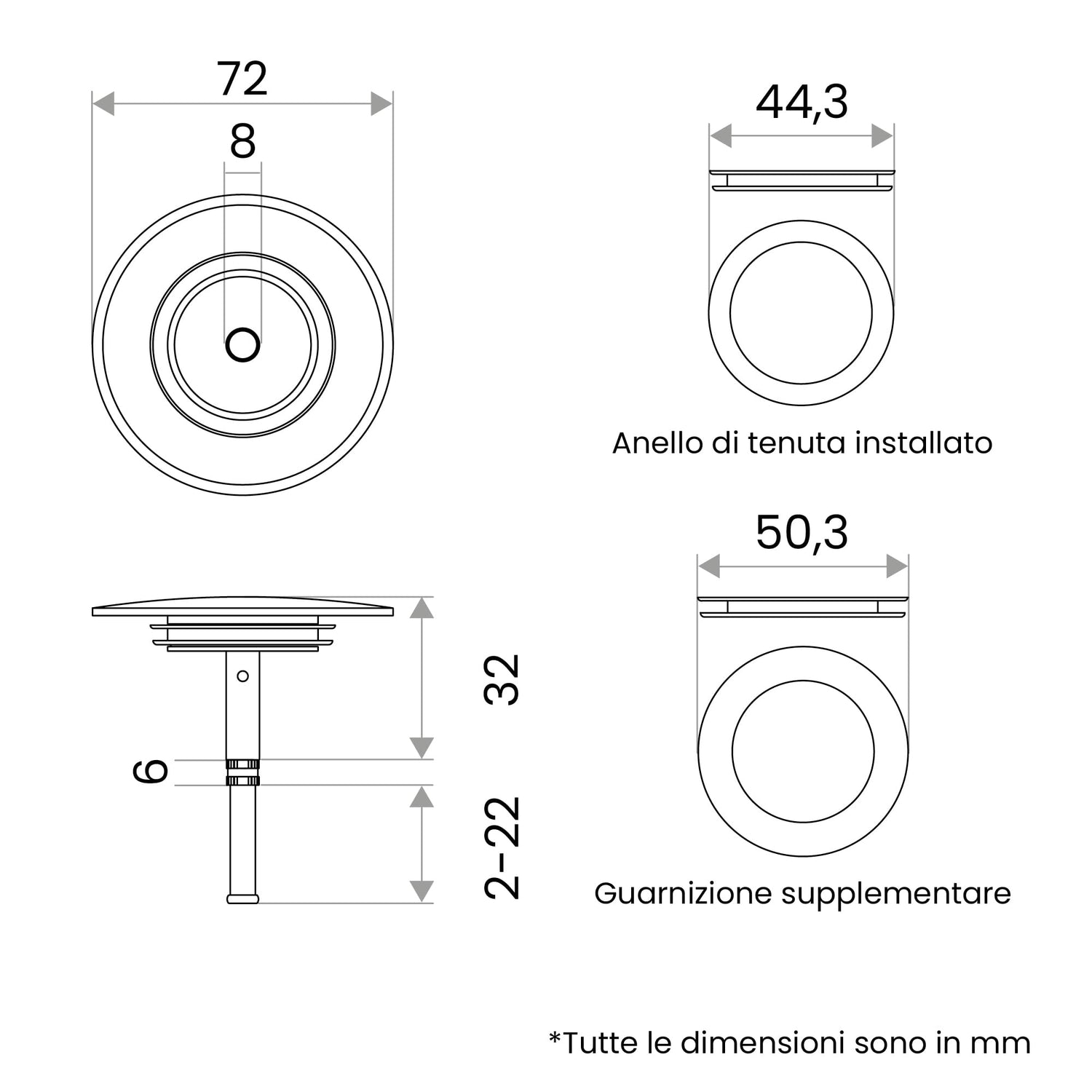 Bächlein Universal Badewannenstöpsel - Abfluss-Stopfen [PVD Gold] - inkl. Ersatzdichtung