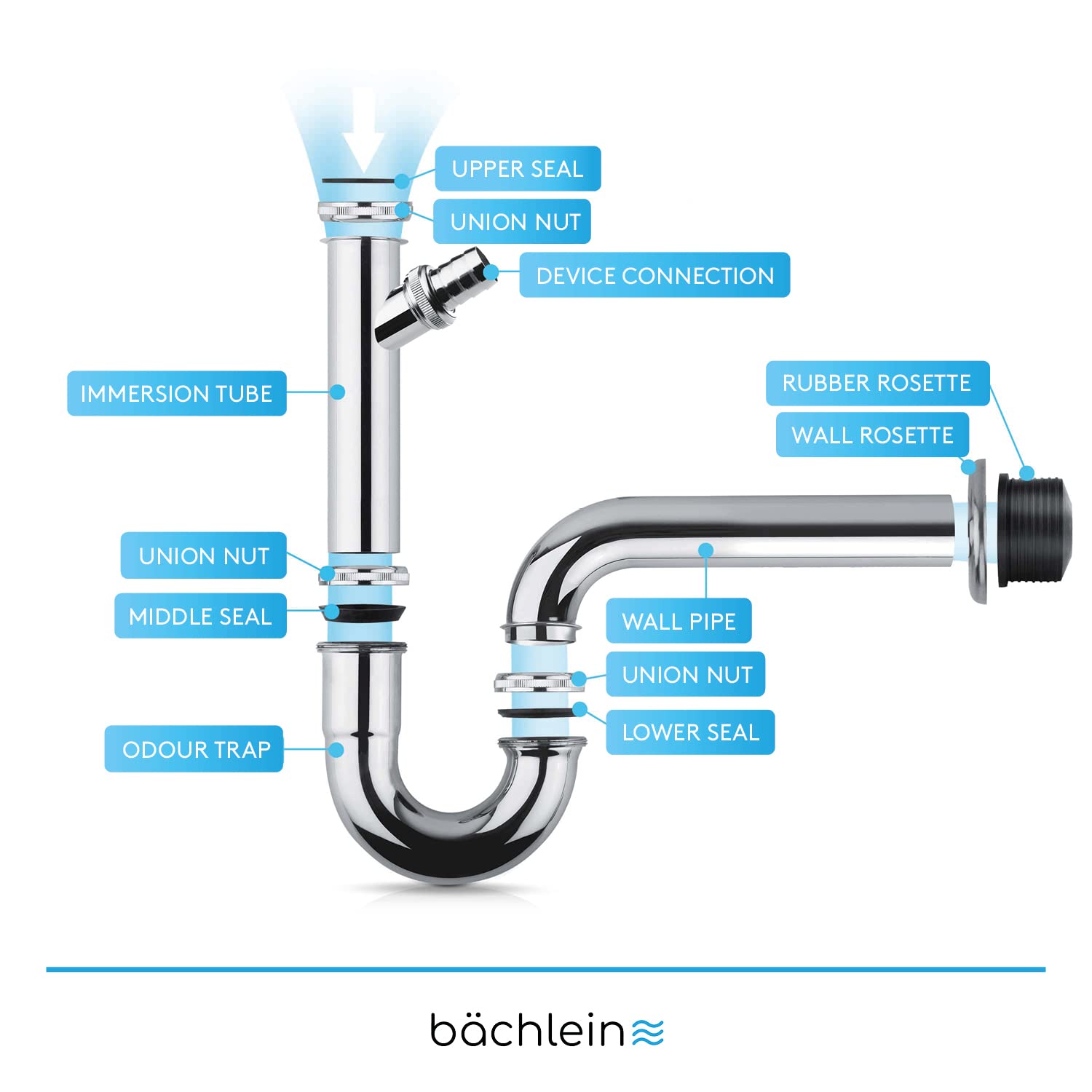 - RELIABLE FUNCTION - Solid, chrome-plated stainless steel and precisely fitting silicone seals keep the siphon permanently sealed and give limescale and corrosion no chance! Complete set including rosette!