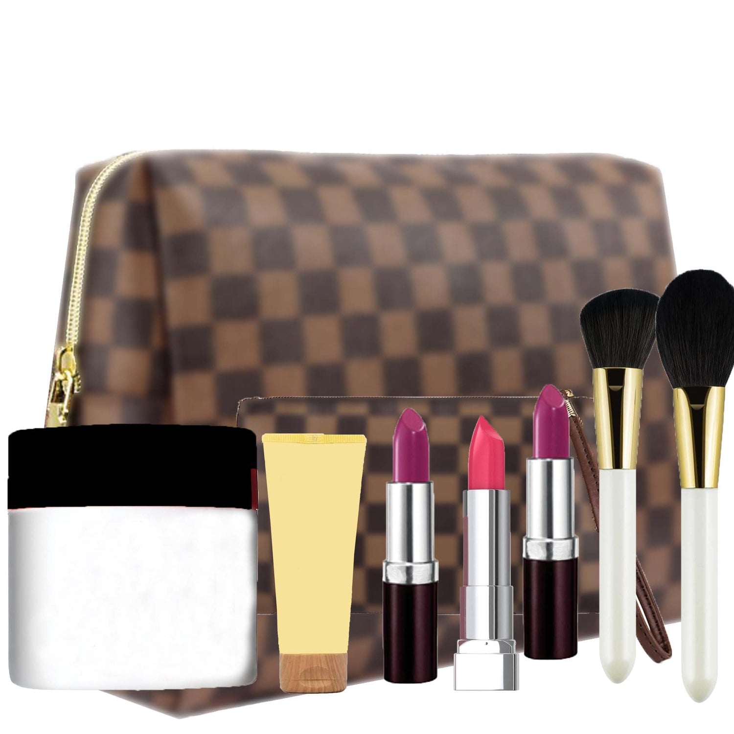 BAGCRAZY Makeup Bag, Cosmetic Bag, Portable Leather Large Checkered Makeup Bag, 2 Pack Large Capacity Travel Cosmetic Bag for Women, Lightweight Design and Waterproof Toiletries Bag Christmas Gifts