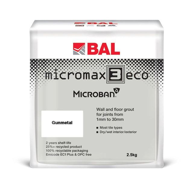 Bal Micromax3 Eco Grout Wall & Floor Grout, Rapid Set, Antimicrobial, Suitable For Interior & Exterior 2.5KG Bag - Gunmetal