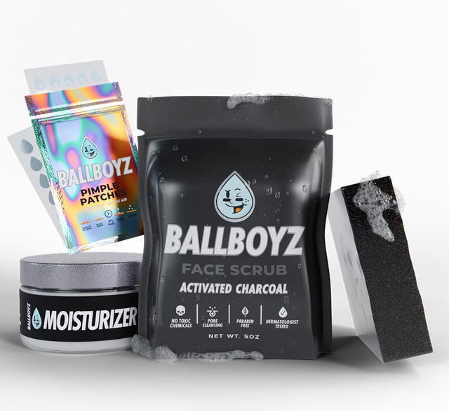 Ballboyz Soap: Gold Pack - Natural Gentle yet Powerful Cleansing to Remove Sweat and Dirt (Activated Charcoal Face Scrub, Cool Breeze Body Scrub, and Mr. Drip Pimple Patches, 1 Count (Pack of 3)