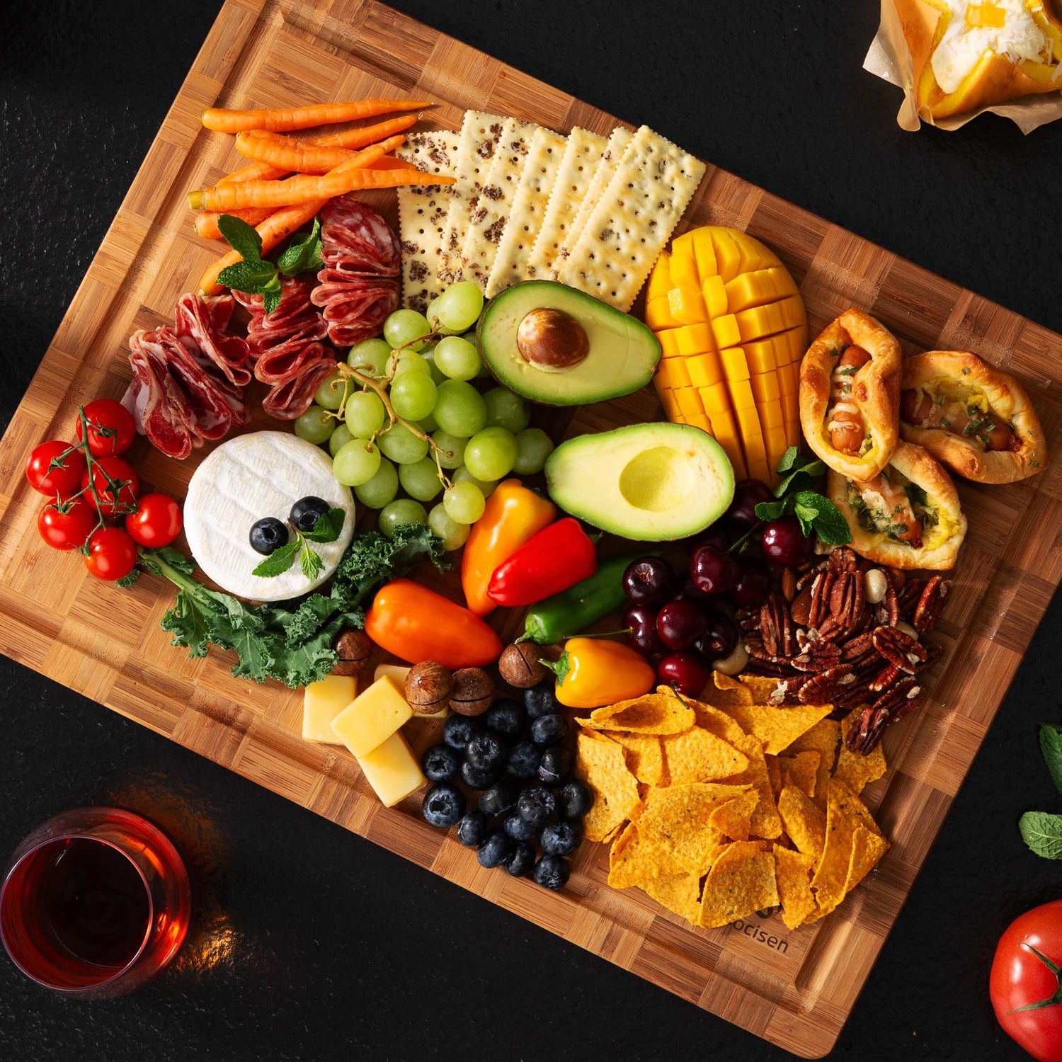 - Knife-Safe Surface for Edge Preservation: Our bamboo cutting board features a durable and thick surface. Meticulously polished to be ultra-smooth and flat, it has no burrs, cracks, or splinters. The cutting board is gentle on knives, reducing dulling and blade damage. Whether using a serrated knife for bread or a chef's knife for vegetables, the wood cutting board prevents blades from dulling quickly, saving you time on sharpening and allowing more time for enjoying your cooking.