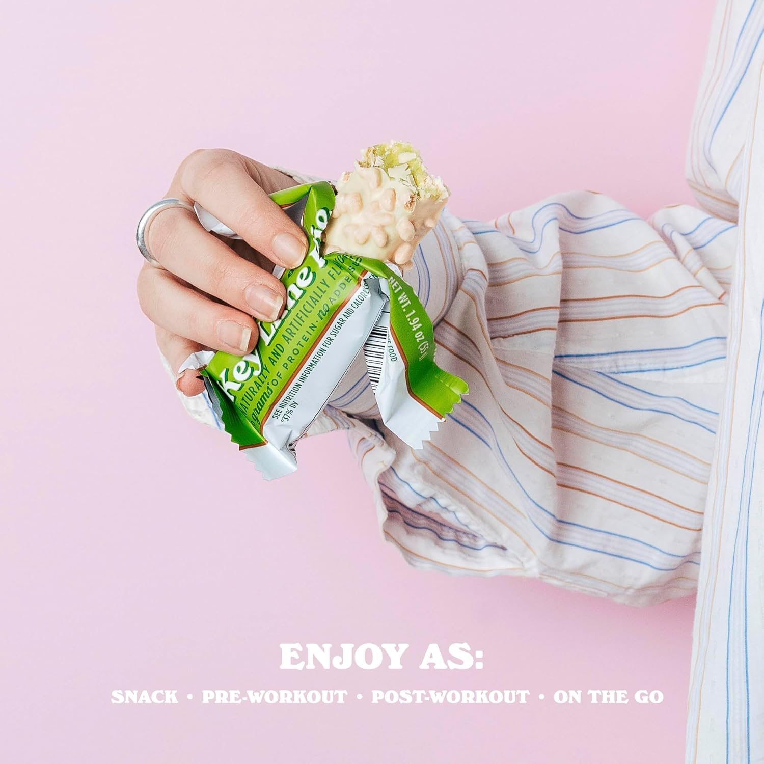 - BAREBELLS KEY LIME PIE PROTEIN BAR - Barebells Key Lime Pie Protein Bar delivers 20g of protein in a soft, pie-inspired dough with a creamy lime filling, wrapped in smooth white chocolate and sprinkled with crispy crunch. Sour, sweet, and satisfyingly delicious - no added sugar, just pure convenience.