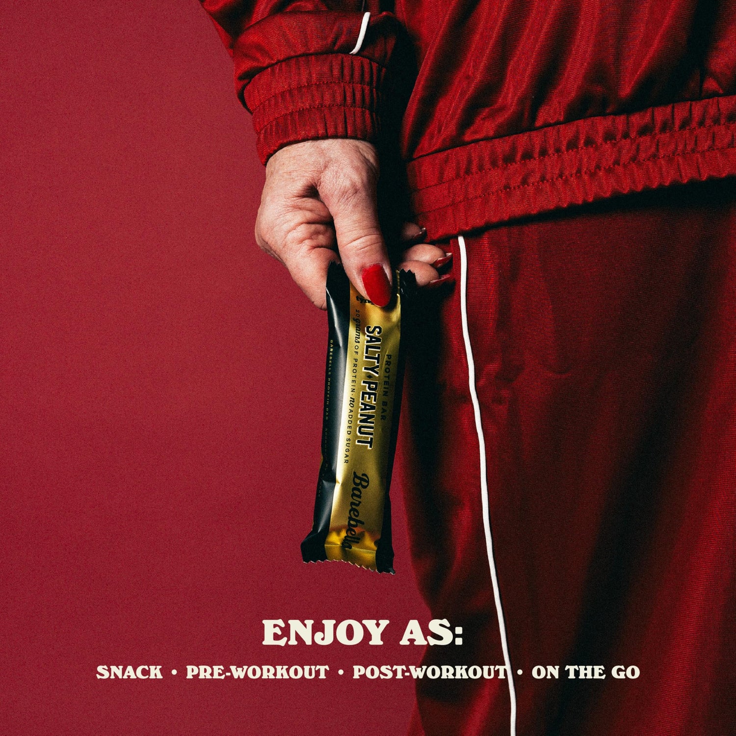 - BAREBELLS SALTY PEANUT PROTEIN BAR - Smooth milky cream laced with crunchy, golden peanuts – a match made in heaven! This tasty treat contains 20 grams of protein and no added sugar