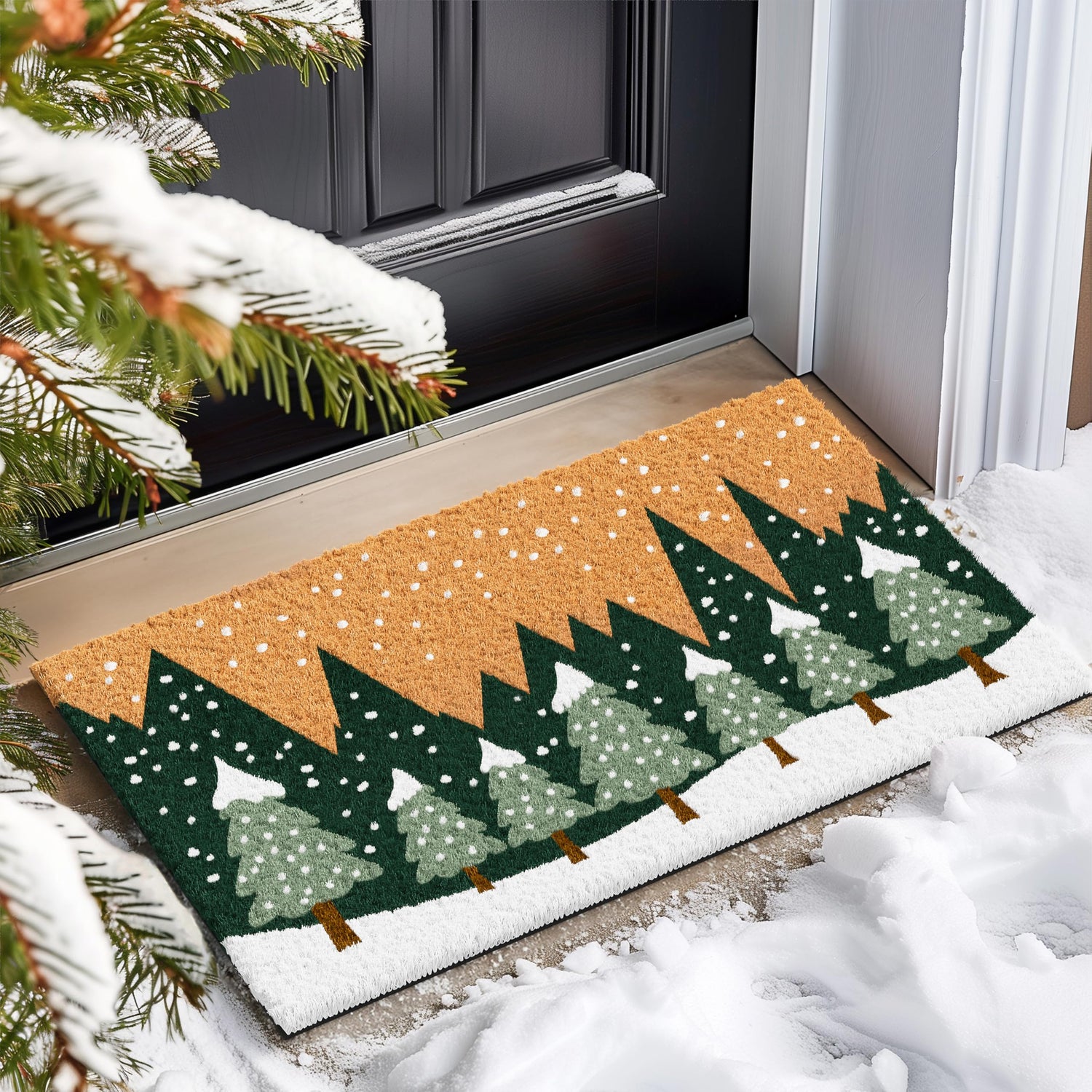 - Christmas Welcome Mat - Welcome guests into your home with our eye-catching Christmas Tree Doormat; it’s the perfect Christmas doormat outdoor or indoor mat. The doormat’s bold design makes it impossible to miss, adding a touch of holiday charm to any entryway.