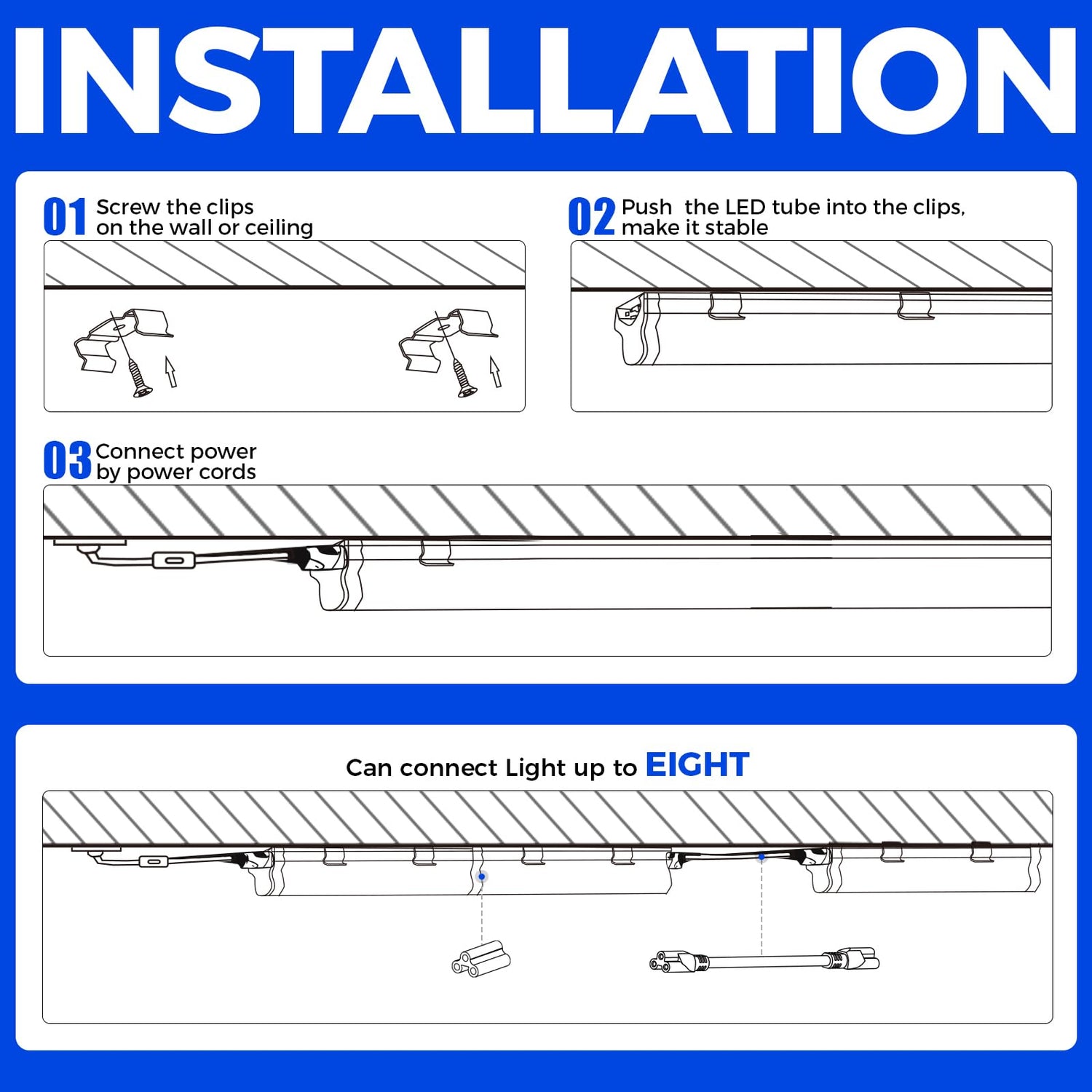 - Complete Package: Each package includes 4 x LED T5 Black light Integrated Single Fixture,4 x Power cord with On/Off Switch,4 x Installation Accessories,4 x 48inches Connecting Cords,4 x Small Connectors