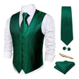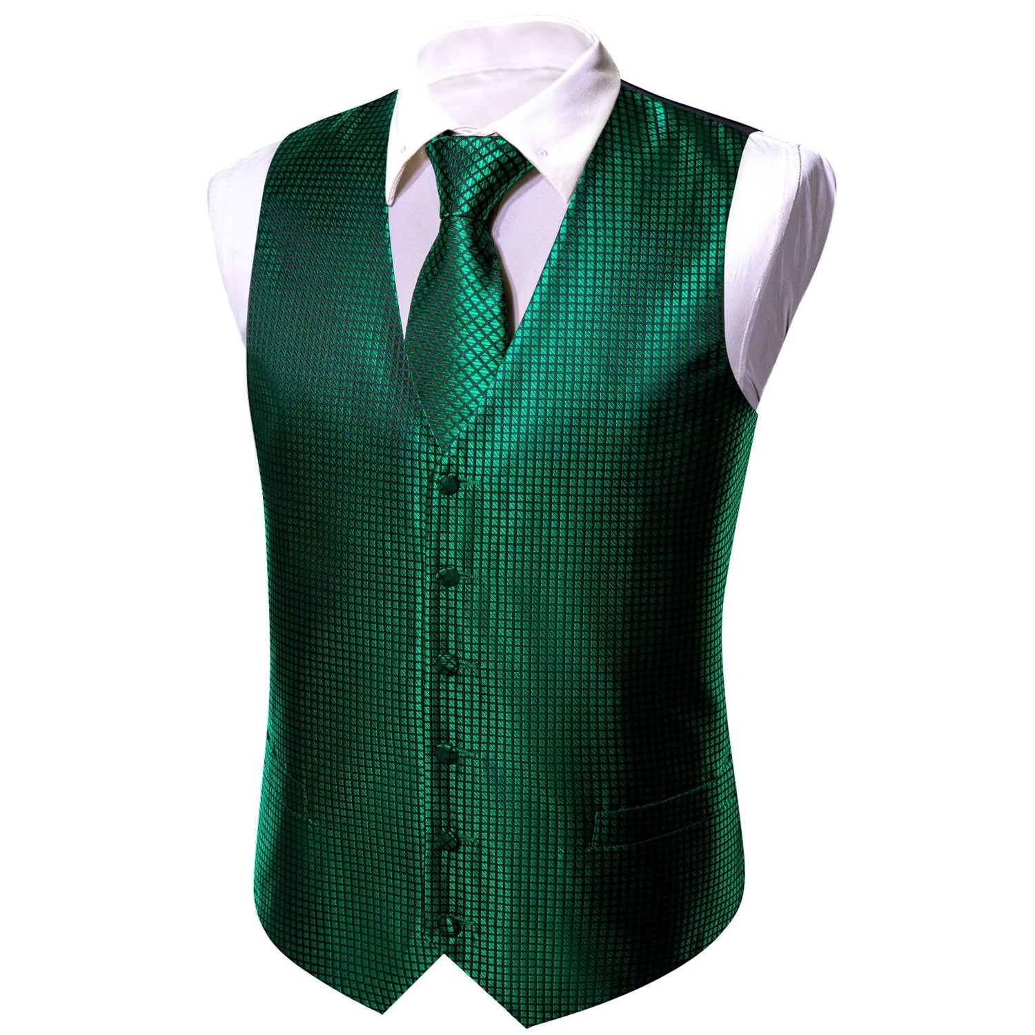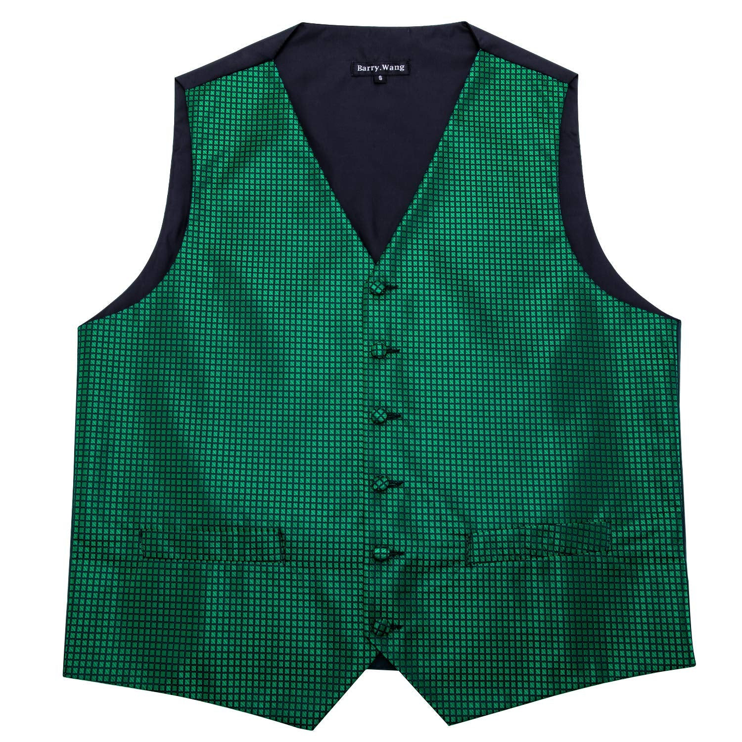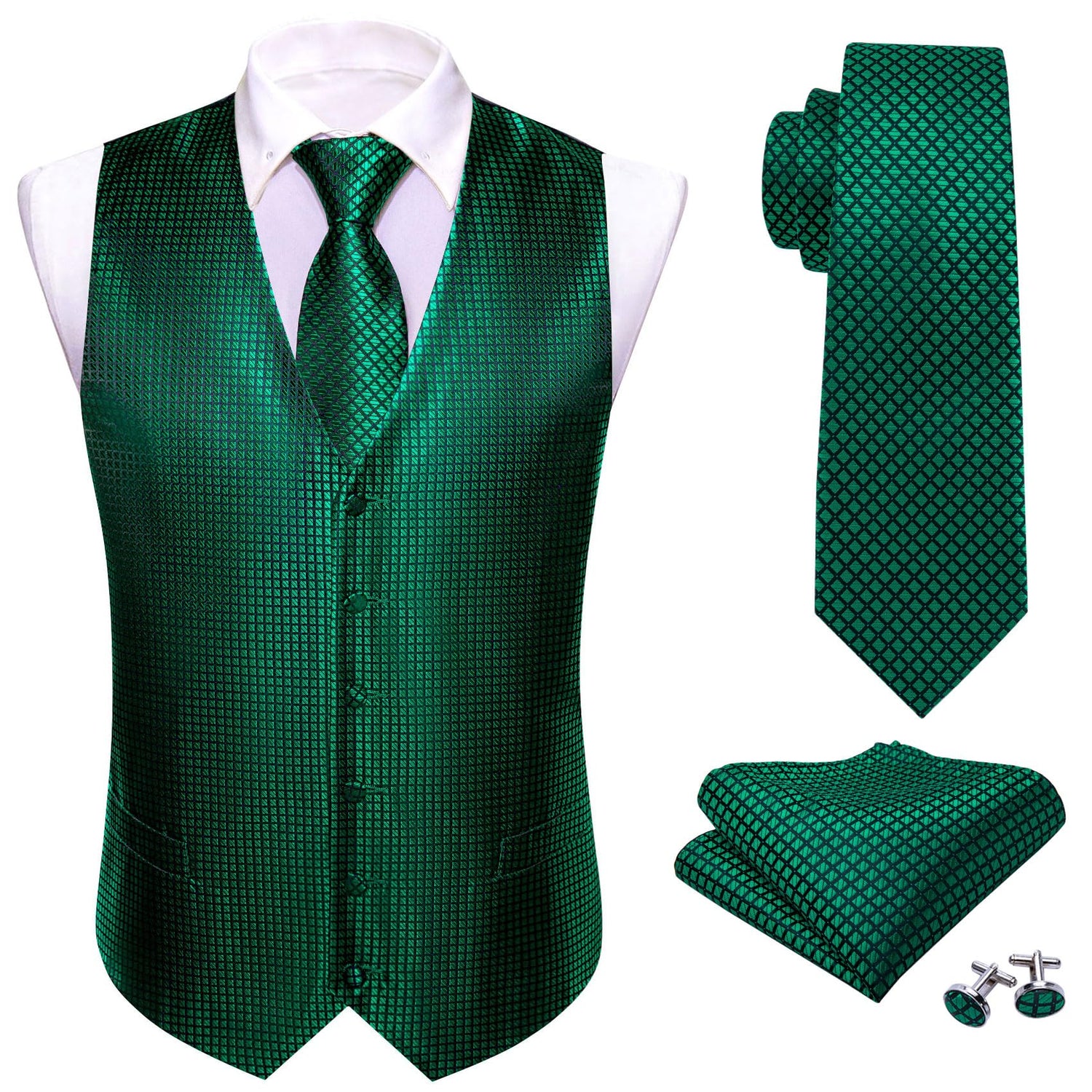 Barry.Wang Men Emerald Green Plaid Waistcoat with Tie Cufflinks Pocket Square Vest Set Wedding Christmas St. Patrick's Day