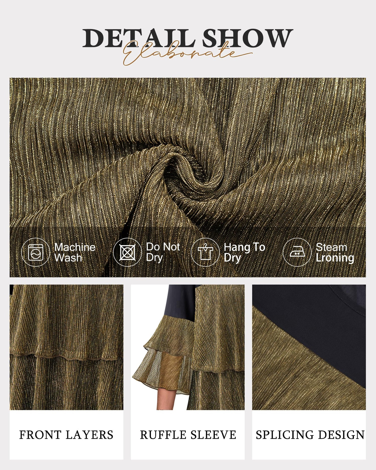 Bebonnie Flowy Sparkly Tops for Women Party: Ladies Casual Long Sleeve Dress Shirts Chiffon Blouses Plus Size Dressy Tops for Wedding Elegant Christmas Night Out Fancy Evening Wear Black Gold XXL