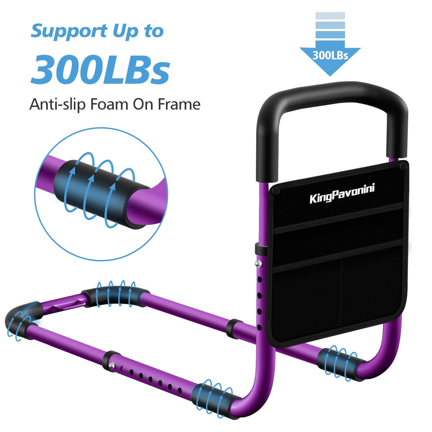 - RELIABLE STRENGTH: KingPavonini portable bed rail has a larger chassis area than similar products, making it sturdy when used by elderly adults. Multiple anti-slip foams cover the rail frame to provide extra friction between the mattress and the spring box. It also comes with a safety strap to secure the support frame to the opposite side of the bed.