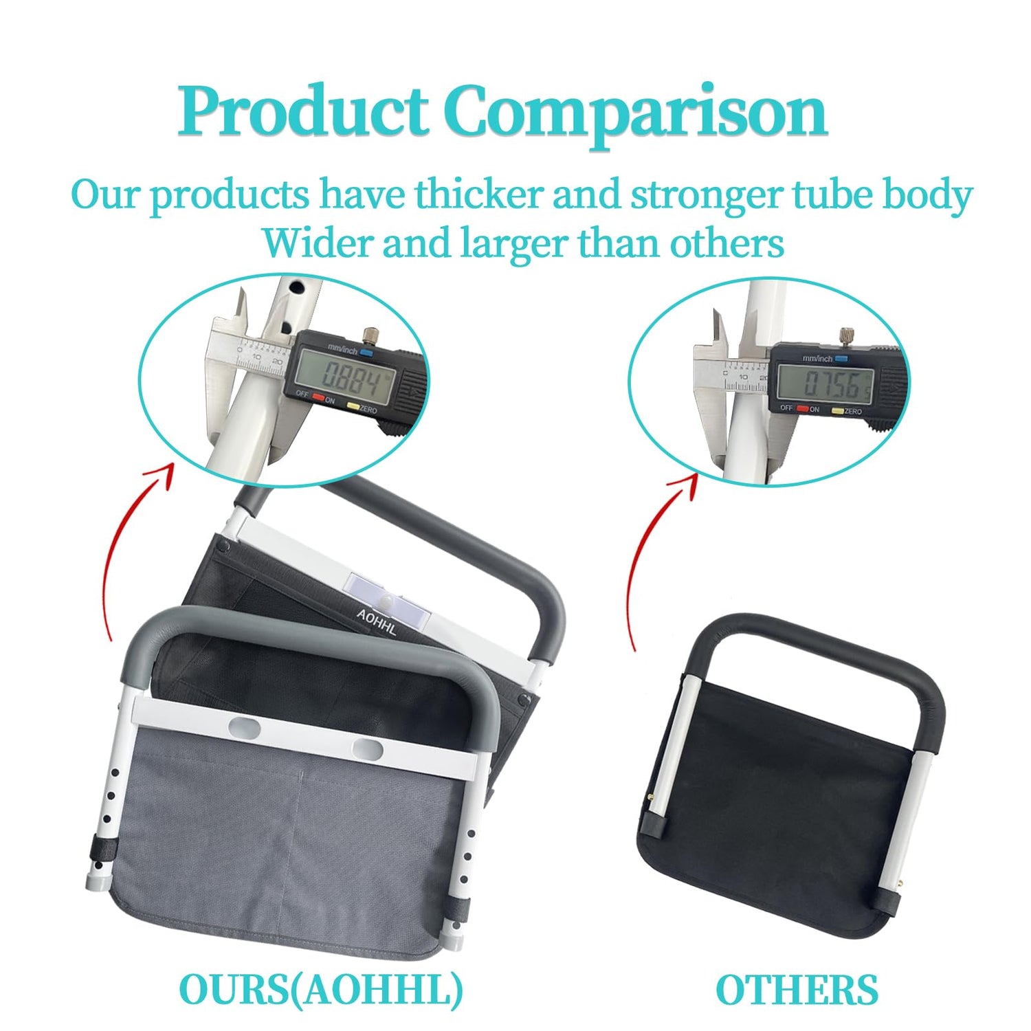 - GREAT STRENGTH: Aohhl portable bed rails have a larger and longer chassis area than other bed rails products, the tube wall is thicker, stronger when used by the elderly, Also prevents people from falling out of bed,and the non-slip foam provides better friction between the mattress and the box spring . The seat belt is bound to the other side of the bed and will be more firm