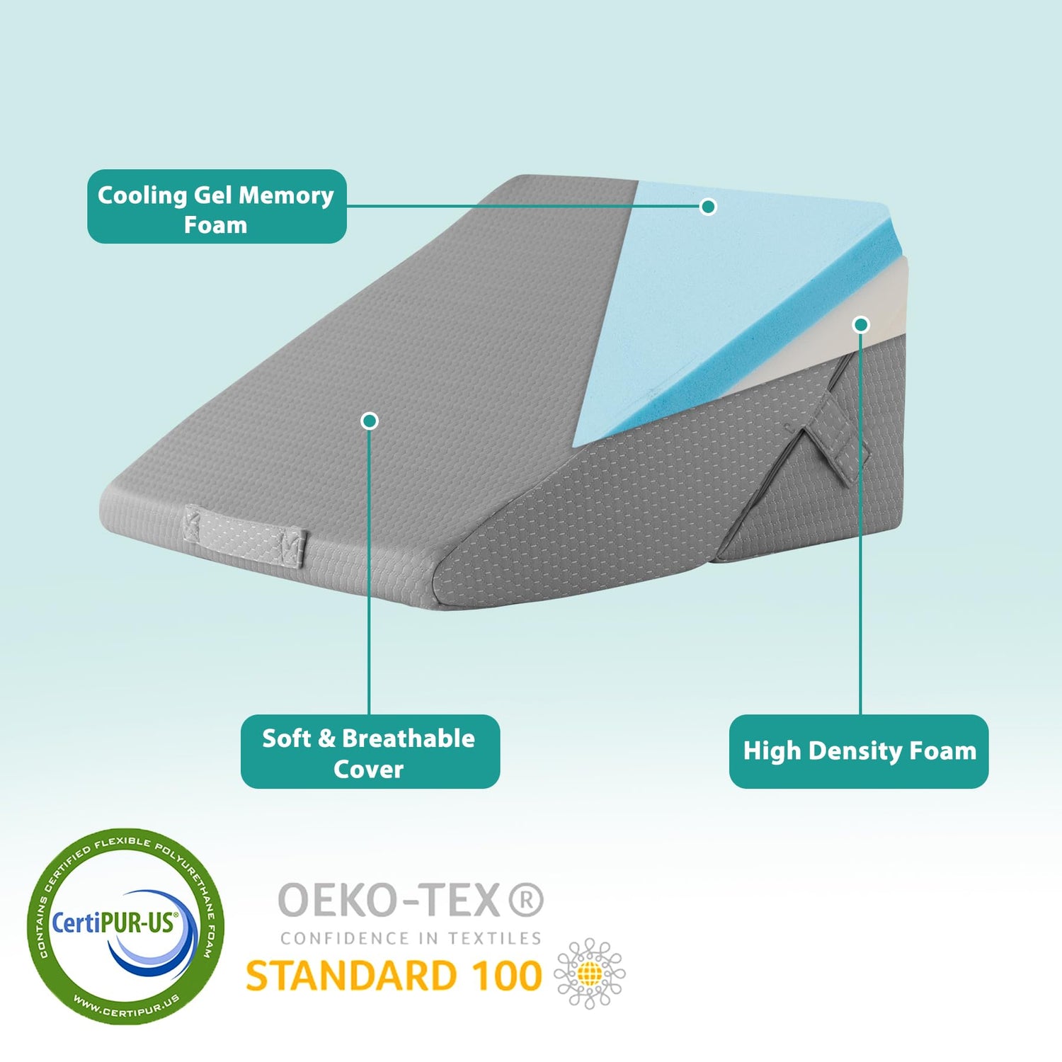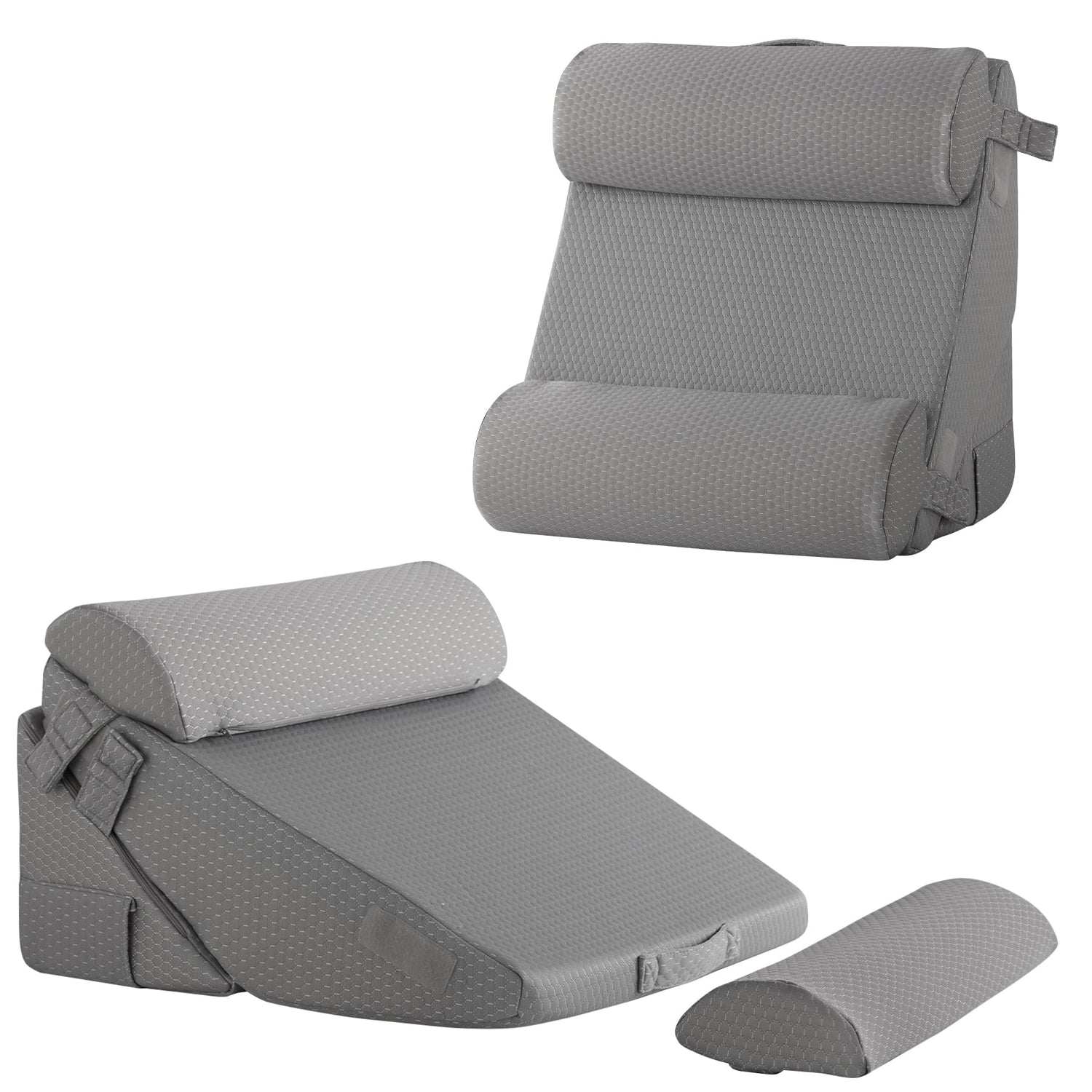 Bedluxe Adjustable 4pcs Bed Wedge Pillow Set, Memory Foam Wedge Pillows Post Surgery for Back, Neck, Leg Pain Relief, Pillow Wedge for Sleeping, Sitting up in Bed, Acid Reflux and GERD, Grey