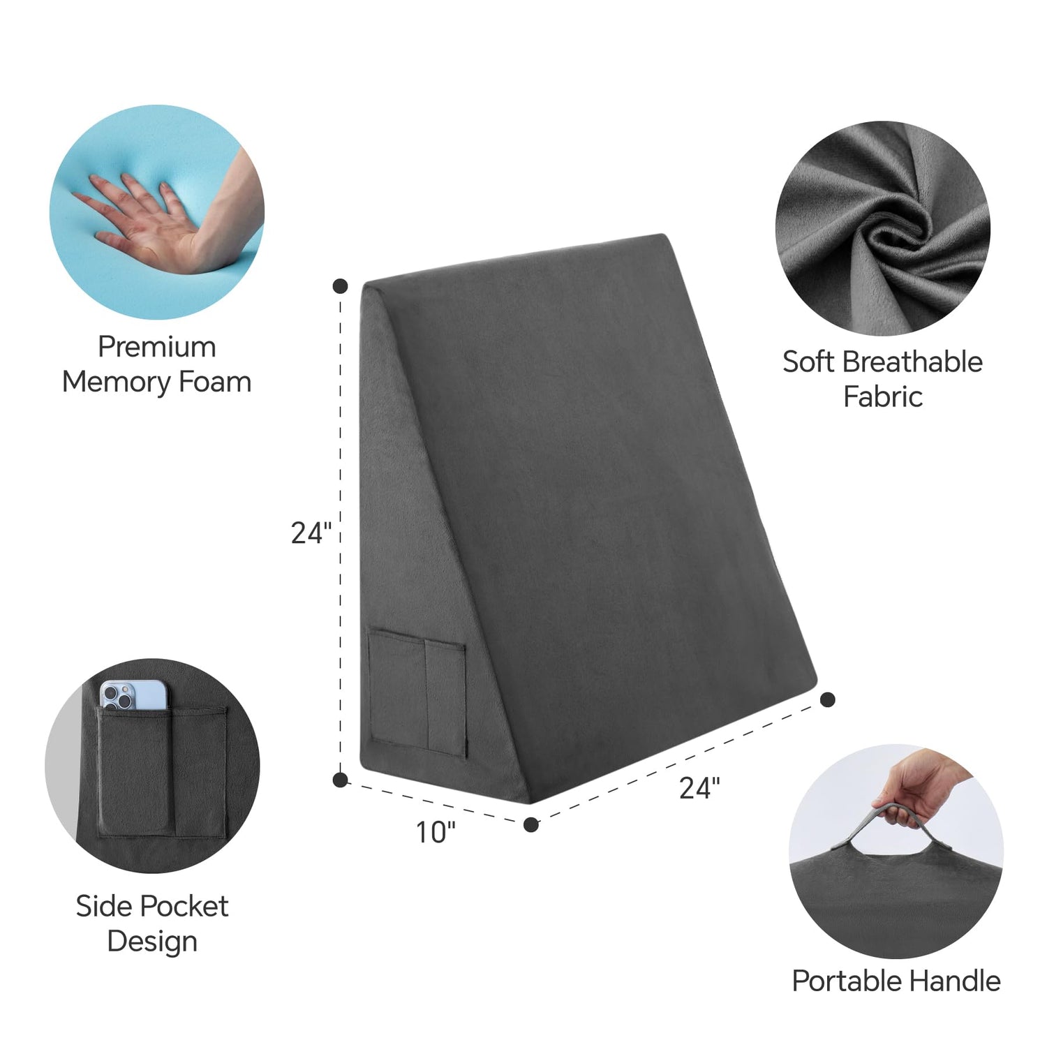 - Convenient Pockets & Portability: Built-in pockets add practicality to the wedge pillows for after surgery, allowing you to store essentials like remote controls and glasses within arm's reach. The addition of a portable handle ensures easy transportation, making it a perfect companion for travel or shifting between rooms.