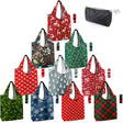 BeeGreen Christmas Reusable Grocery Bags 10 Pack Reusable Shopping Bags Bulk Christmas Gifts Tote Bags with Zipper Storage Pouch Elastic Band Foldable-Machine Washable