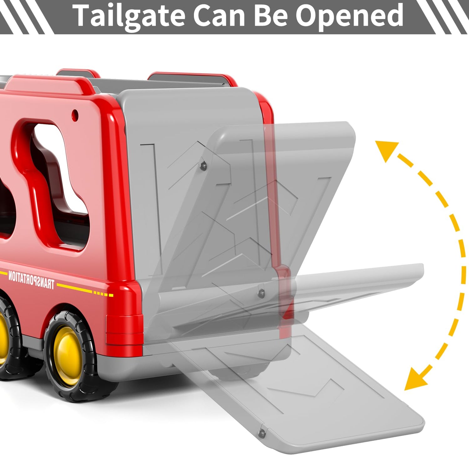 - 【5 IN 1 TODDLER FIRE TRUCKS SET】The fire truck for toddlers 1 2 3 4 5 years old includes a large transport truck and 4 small fire lifting truck/ladder truck/helicopter/plane. The body of mini fire trucks can rotate, adding fun to playing and attracting children, so each kids toddlers can learn some simple fire treatment measures.